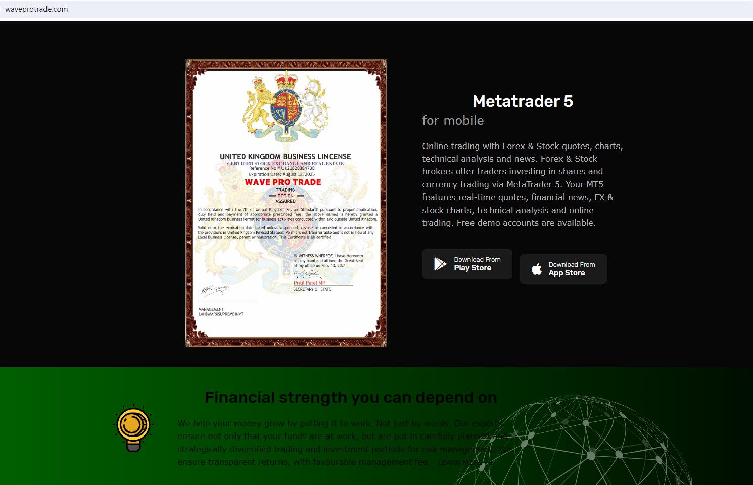 The truth is that Wave Pro Trade is not regulated by any regulators. Letting it hold or control investors' money is unsafe, and the money can not be protected by any laws.