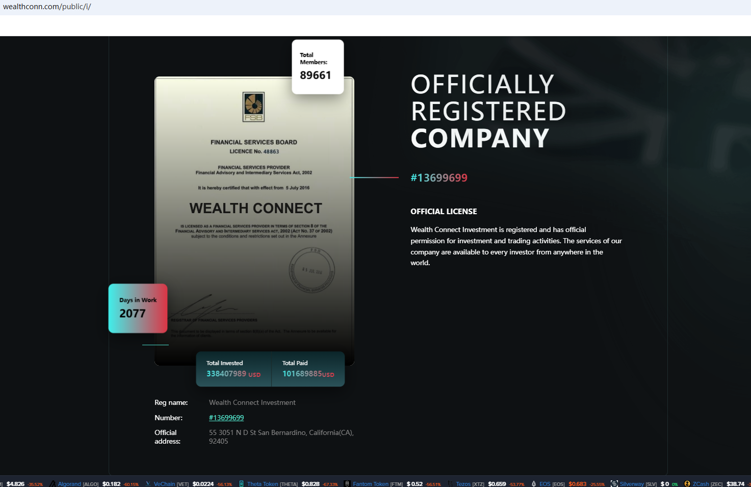 The truth is that Wealth Connect is not regulated by any regulators. Letting it hold or control investors' money is unsafe, and the money can not be protected by any laws. Wealth Connect is a scam.