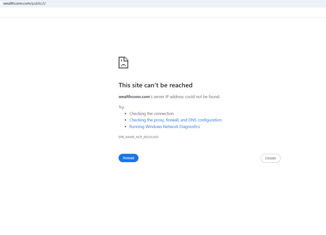 BrokersView found that the domain "https://wealthconn.com/public/i/" is currently inaccessible. This is widely regarded as a significant red flag, as the suspension of a broker's website often points to underlying regulatory or operational issues.