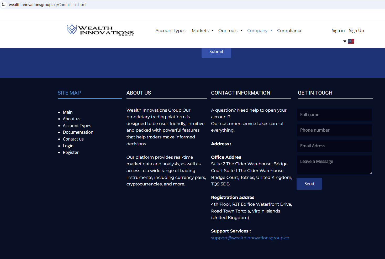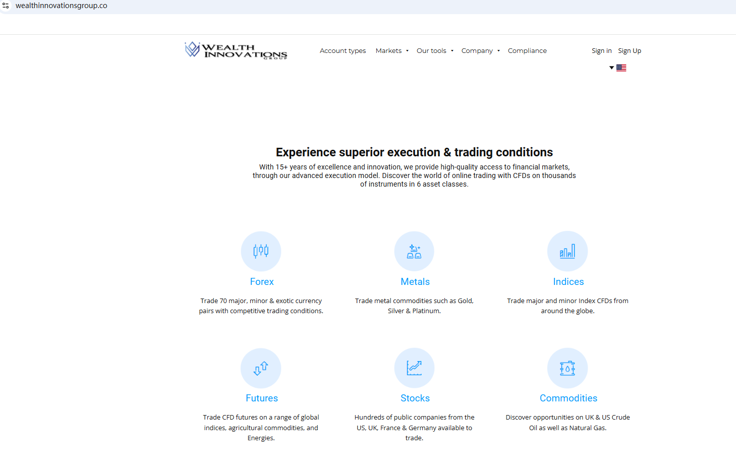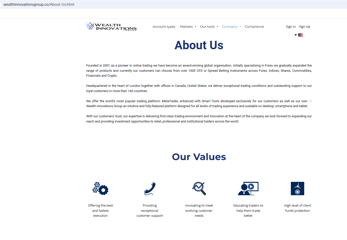 BrokersView found that the domain "wealthinnovationsgroup.co" is currently inaccessible. This is widely regarded as a significant red flag, as the suspension of a broker's website often points to underlying regulatory or operational issues.