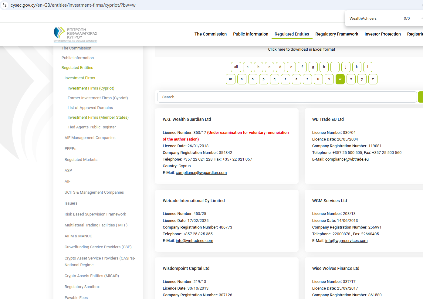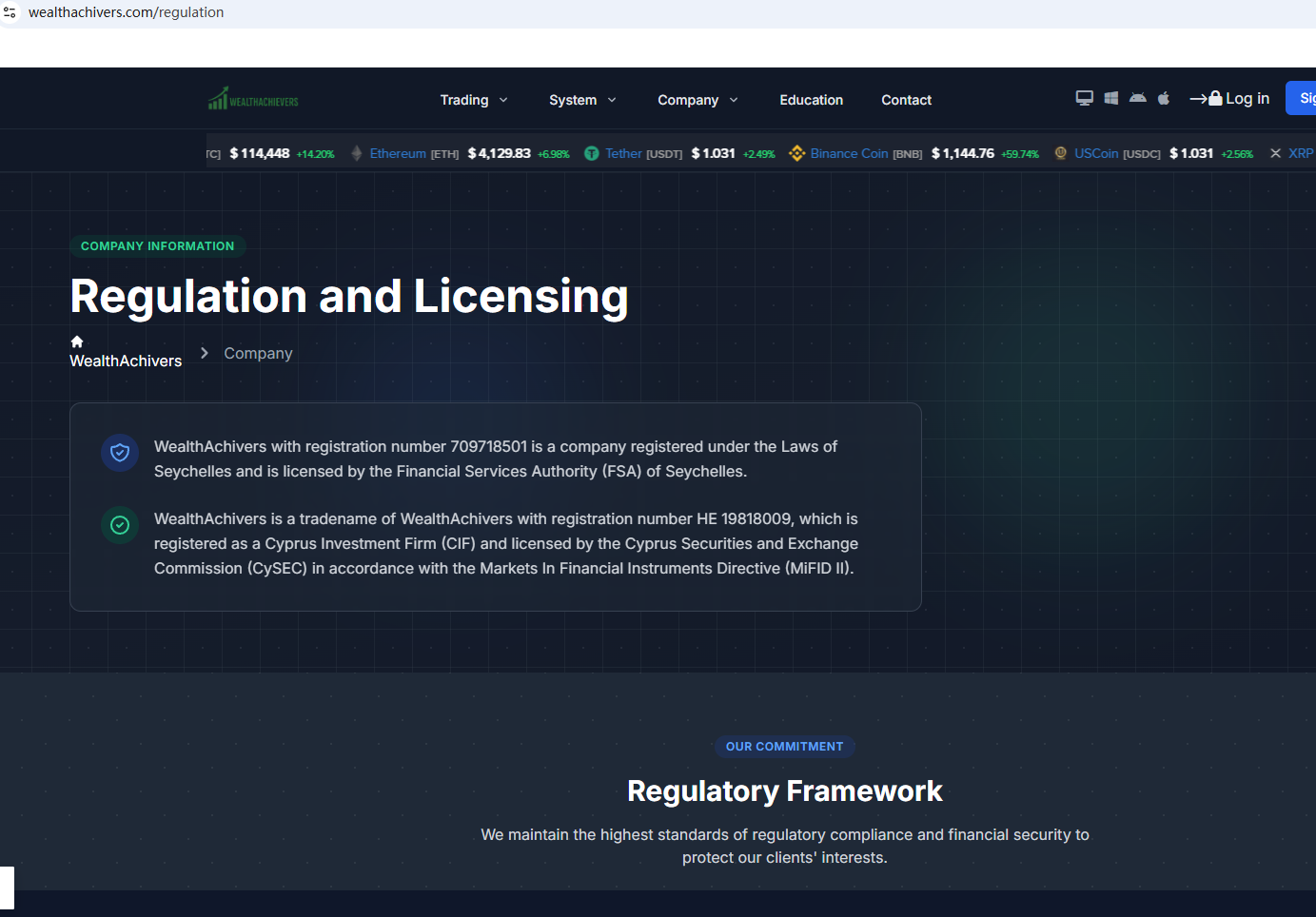 According to its website, it claims to be regulated by the Seychelles Financial Services Authority (Seychelles FSA) and the Cyprus Securities and Exchange Commission (CySEC). Upon investigation, no matching information was found in the Seychelles FSA and CySEC. In addition, the Financial Conduct Authority (FCA) issued a warning regarding WealthAchivers, suspecting that this company may be offering financial services or products without the necessary authorization.
