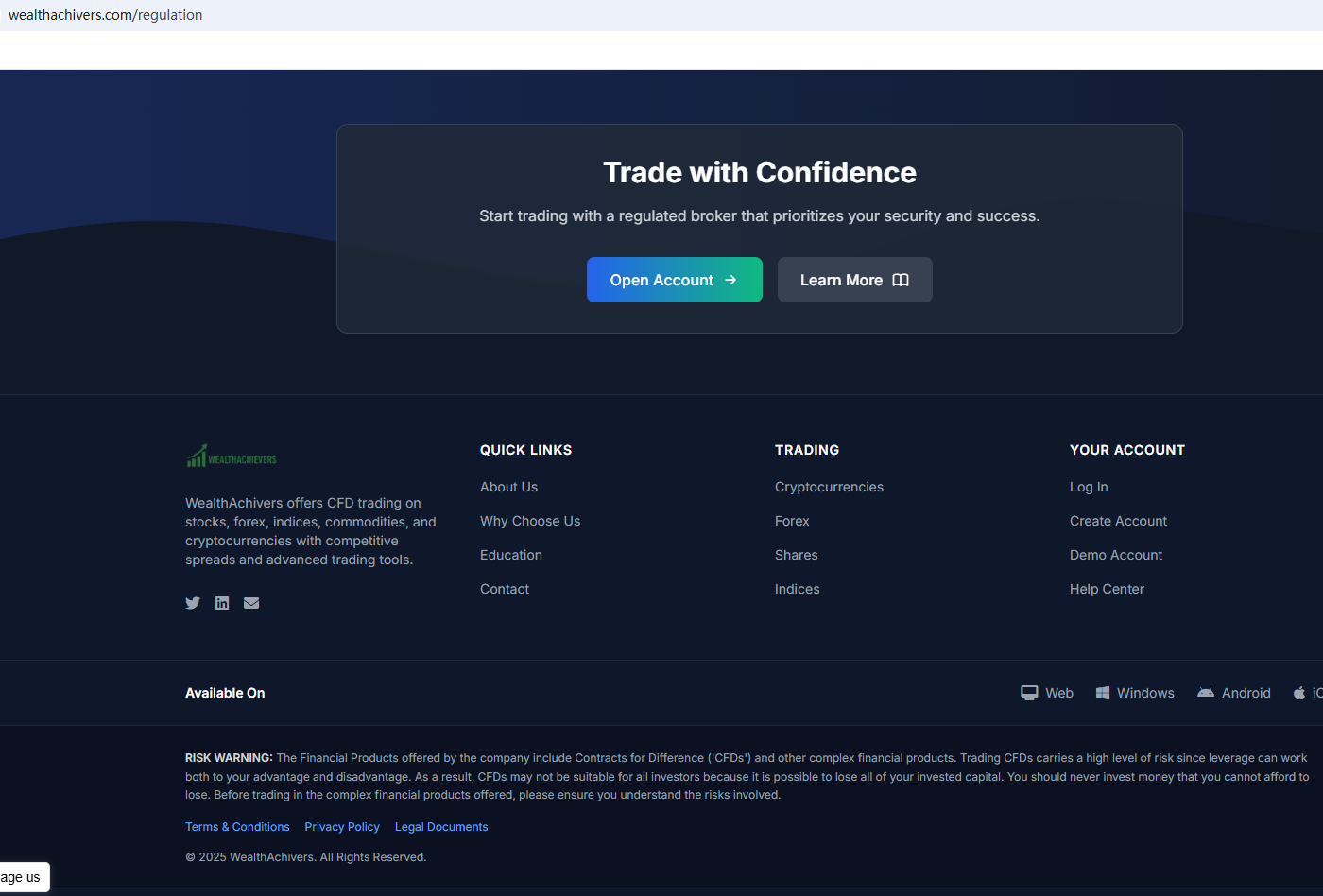 In fact, WealthAchivers is not regulated by any authority. Therefore, WealthAchivers is a scam.