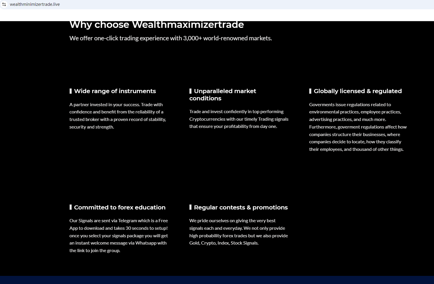 The truth is that Wealthmaximizertrade is not regulated by any regulators. Letting it hold or control investors'money is unsafe, and the money can not be protected by any laws.