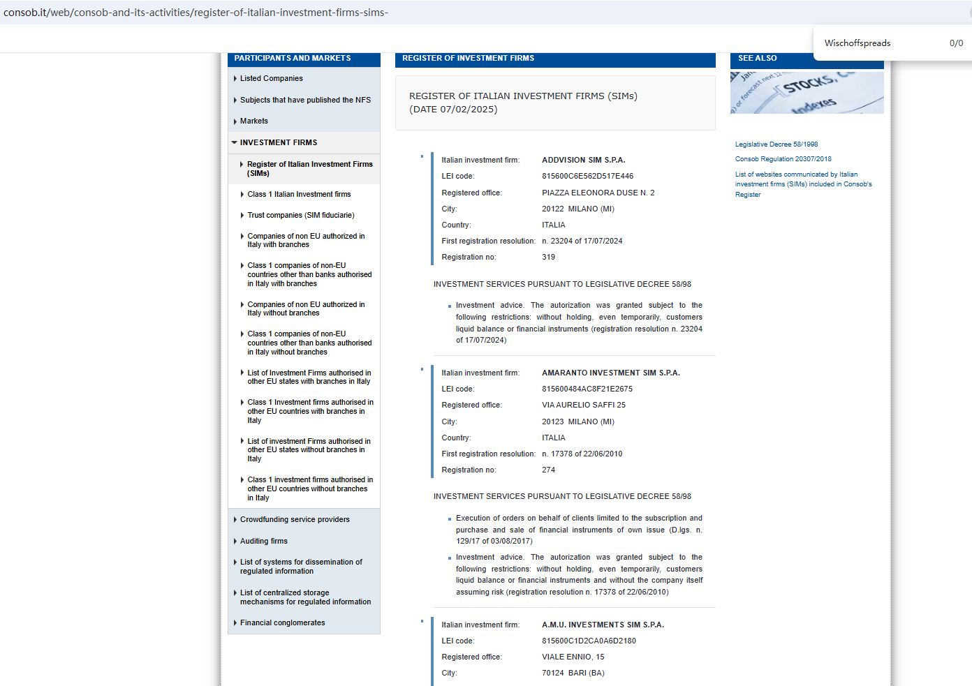 On January 30, 2024, the Malta Financial Services Authority (MFSA) issued a warning against Wischoffspreads, stating this broker is neither a Maltese registered company nor licensed or otherwise authorised by the MFSA to provide any investment services or other financial services which are required to be licensed or otherwise authorised under Maltese law. https://www.mfsa.mt/news-item/mfsa-warning-wischoffspreads-unlicensed-entity/