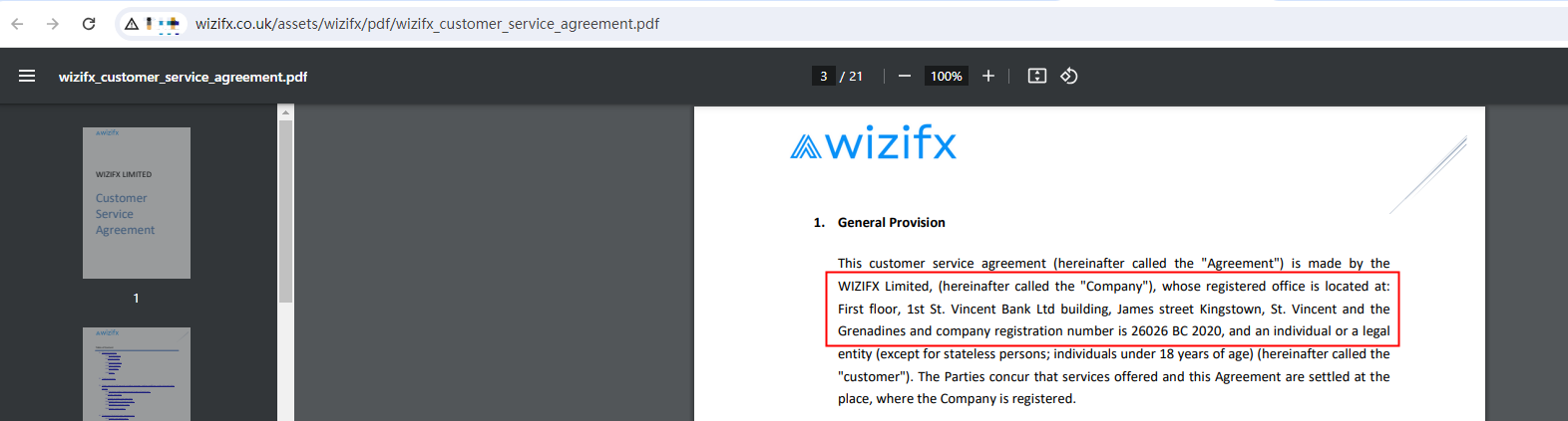 Wizifx claims to be registered in Financial Services Authority (FSA) of Saint Vincent and the Grenadines, but we don't find any results on FSA of Saint Vincent and the Grenadines matching to Wizifx. What's more, FSA of Saint Vincent and the Grenadines doesn't regulate forex or issue forex licenses.