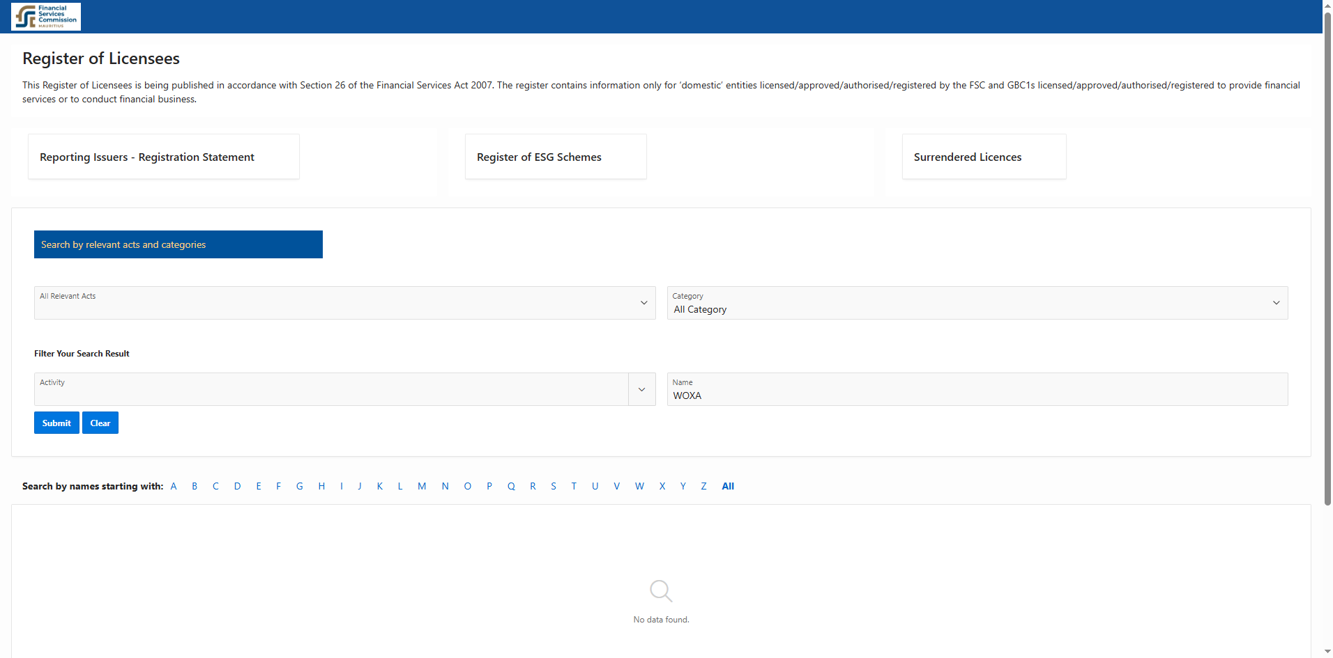 Previously, Woxa claimed to be operated by Woxa Ltd and regulated by the Mauritius Financial Services Commission (FSC). However, since the Mauritius FSC does not maintain domain name registrations, it was difficult to verify whether the authorized entity was genuinely associated with the platform. Now, it appears that this regulatory status has been revoked, as we are unable to locate the company in the FSC's official database. Furthermore, Woxa's website "https://woxa.com/" is no longer accessible. Therefore, it is highly likely that the company has ceased operations.