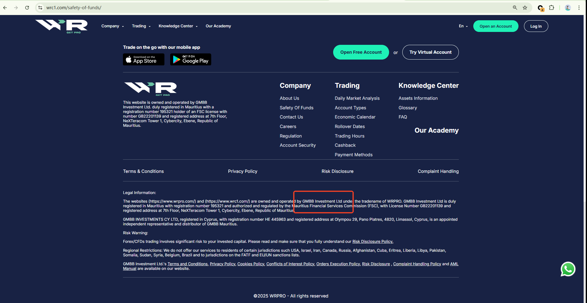 WrPro claims to be owned by GMBB Investment Ltd., a company licensed by the Mauritius Financial Services Commission (FSC) under number GB22201139, and states that it has a distribution arm registered in Cyprus. While GMBB Investment Ltd. is confirmed to exist, the FSC does not publicly link licensees to specific websites, making it difficult to verify WrPro’s authenticity or its connection to GMBB. Additionally, there is no evidence that GMBB is regulated by CySEC in Cyprus, raising concerns about regulatory oversight. Based on these findings, WrPro is suspected of being a scam.