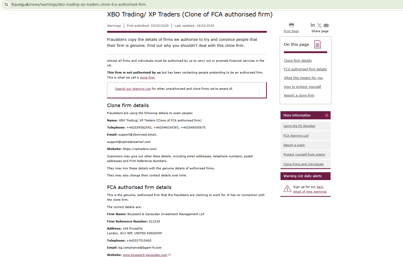 The website, xptraders.com, branded XBO Trading aka XP Traders, is relatively new, with its domain name registered in October 2024. The Financial Conduct Authority (FCA) has issued a warning against the platform, identifying it as a clone of an FCA-authorized firm.