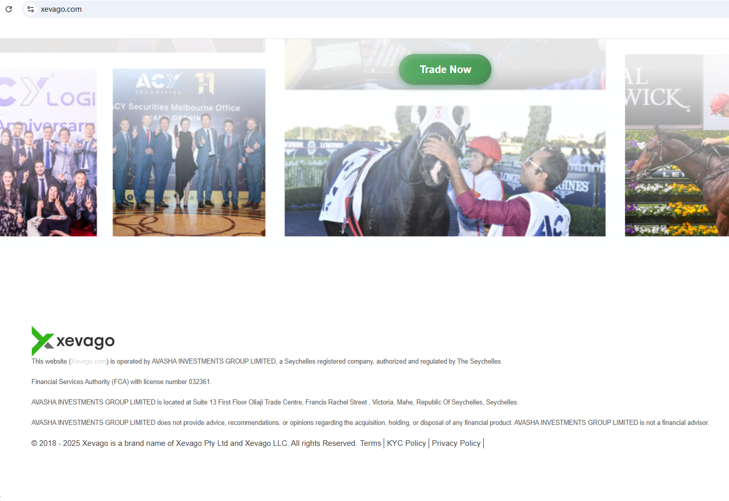 According to its website, it claims to be regulated by the Seychelles Financial Services Authority (Seychelles FSA) and the Financial Conduct Authority (FCA). However, upon investigation, no matching information was found with the Seychelles FSA or FCA. In addition, the Financial Authority (Autorité des Marchés Financiers, AMF) added Xevago to warning list for it being an unauthorized company engaging in forex activities.
