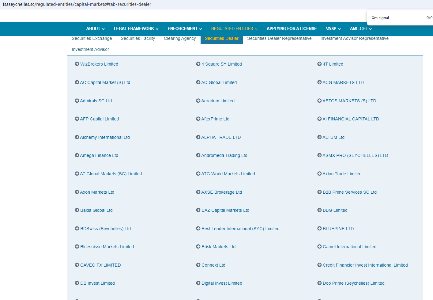 It claims to be registered in both St. Vincent and the Seychelles. Upon investigation, we found that the broker on file with the Financial Services Authority of St. Vincent and The Grenadines (SVG FSA) is not Xm signal, and no matching information was found in the Seychelles Financial Services Authority (Seychelles FSA). In addition, the National Securities Market Commission (CNMV) issued a warning against Xm signal, believing this company might be providing financial services or products without proper authorization.