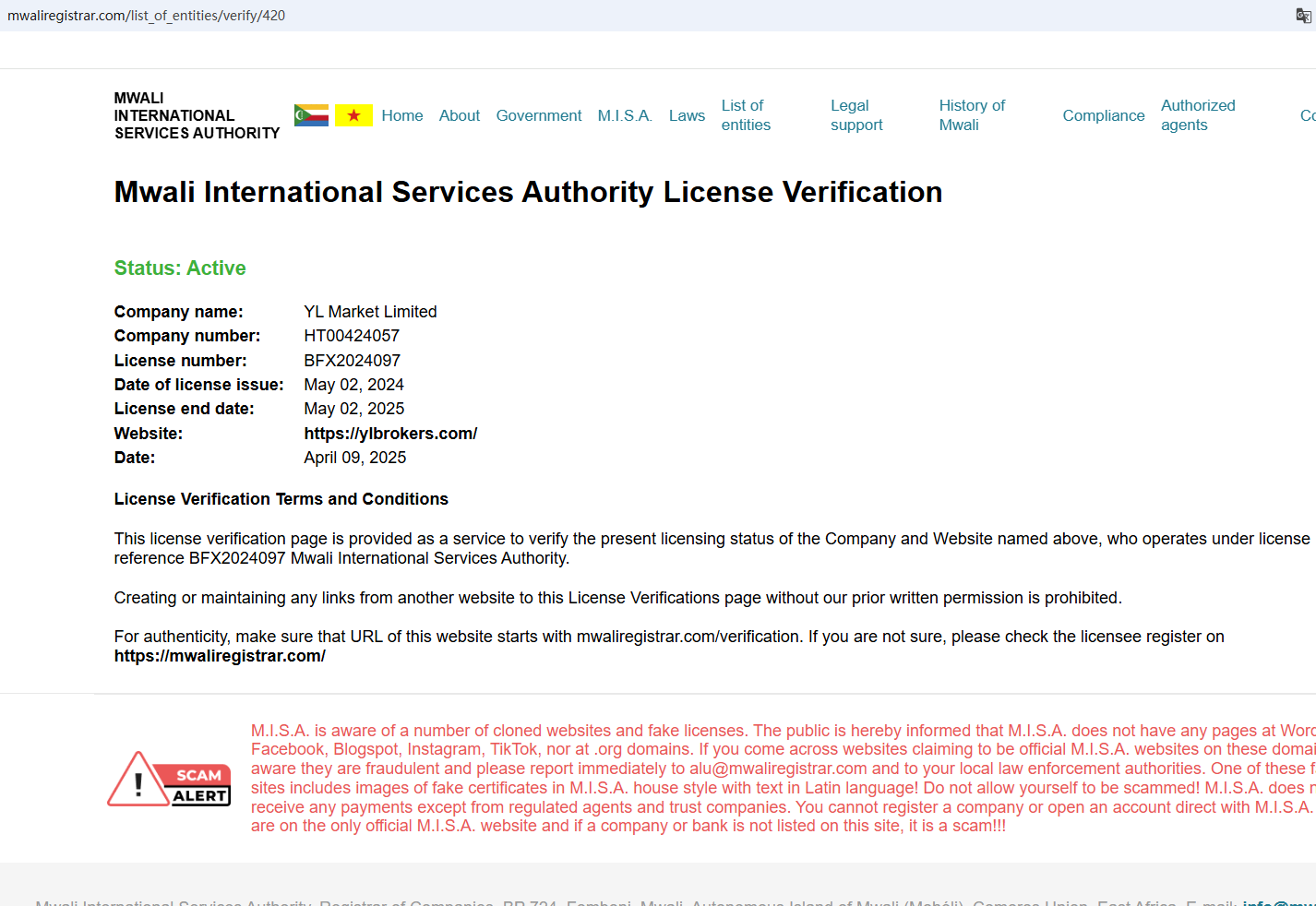 In essence, YL Market is not regulated by any governing body. Entrusting it with investors' funds is highly risky, as there are no legal protections in place to safeguard the funds. YL Market appears to be a scam.