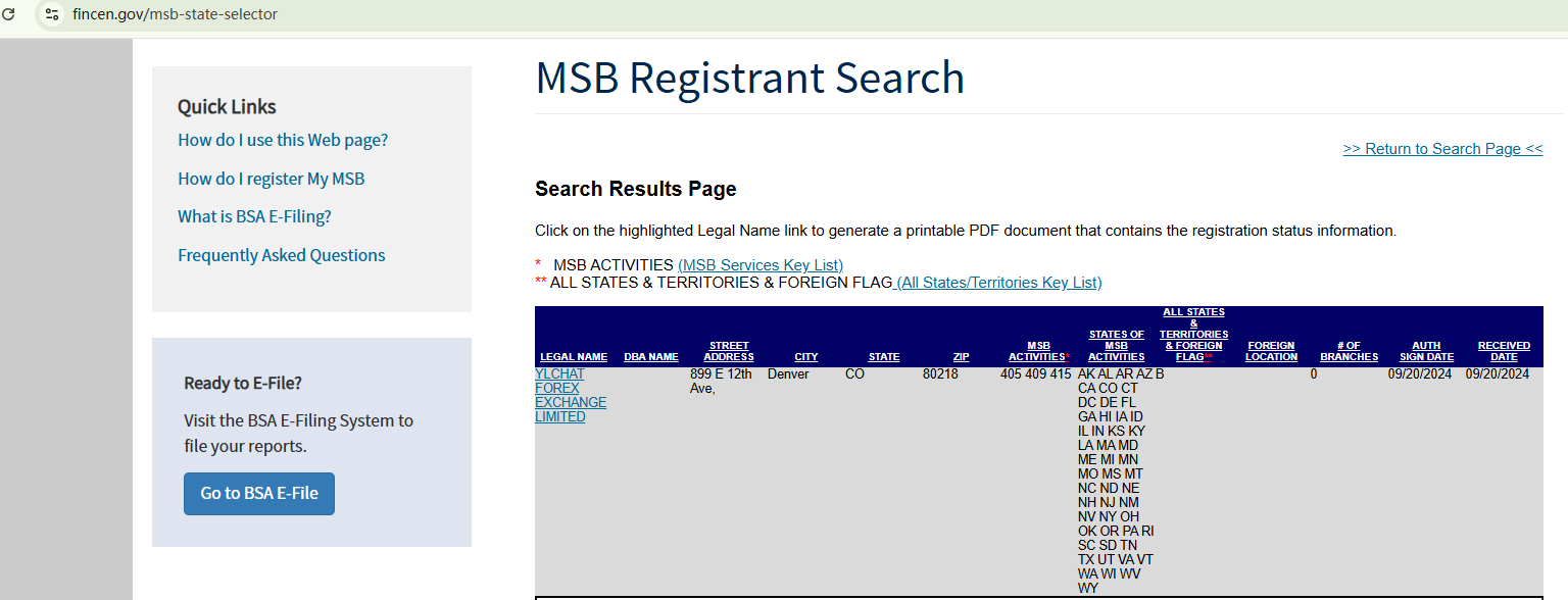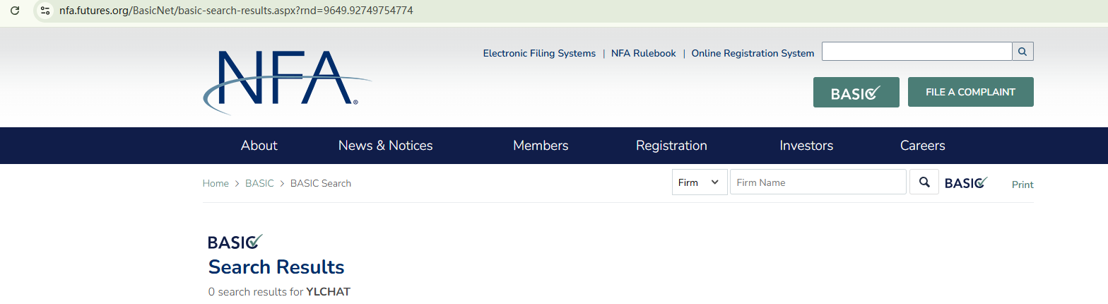 YLCHAT claims to be headquartered in the United States, being an MSB registrant of the Financial Crimes Enforcement Network (FINCEN). However, the MSB registration doesn't constitute a license from a financial regulator. The National Futures Association (NFA) has no information suggesting that YLCHAT is licensed or regulated in the US. The New Zealand Financial Markets Authority (NZ FMA) has flagged YLCHAT as a dubious investment website.
