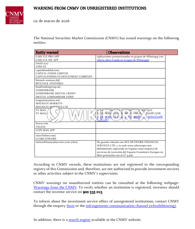 In one case, the CNMV clarified that networkfinancialservices.com is a clone website and has no connection with the legitimately registered firm NFS Network Financial Services Ltd, whose official website is www.nfseurope.com and is properly authorised in Spain as an investment services company.