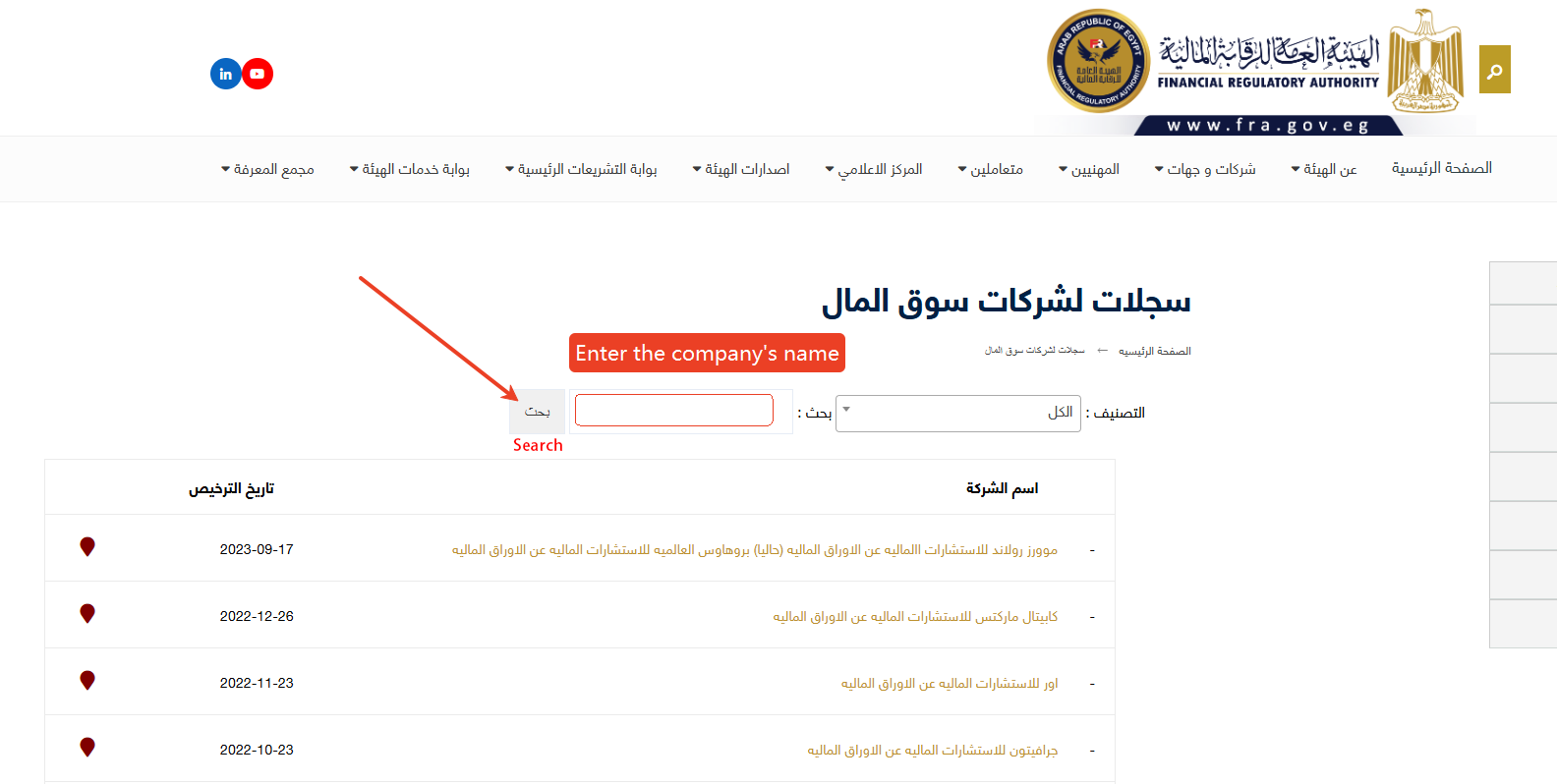Web/เว็บไซต์: http://www.fra.gov.eg/